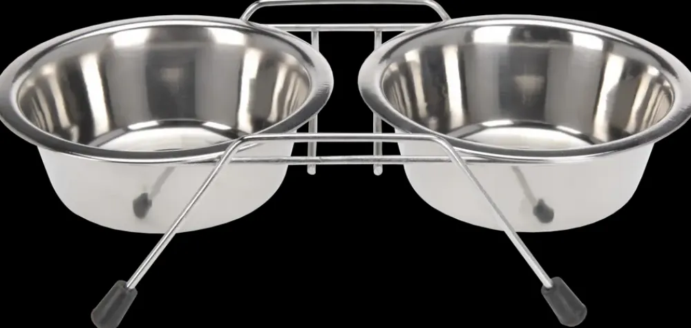 Forkæl dit kæledyr med en flot foderbar med 2 skåle i rustfrit stål og stativ med gummifødder for at skåne gulvet. Er særligt velegnet til katte og små hunde.