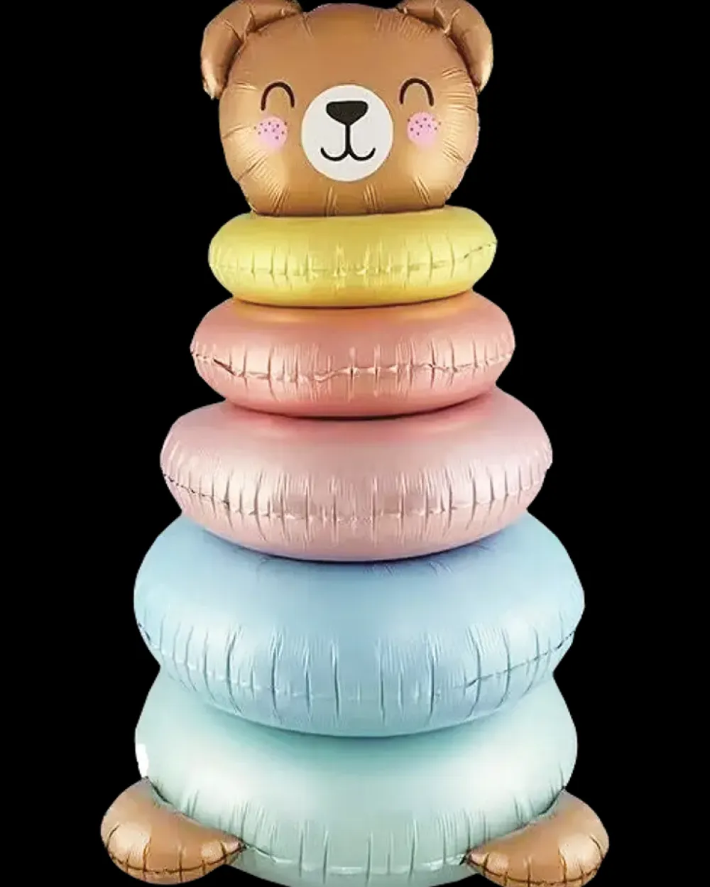 Stående folieballon lavet som en bamse med ringe på maven.Ballonen pustes op med luft og kan stå og være dekorativ, i flere dage. Måler: 116 x 64 cm oppustetPusterør til oppustning er inkluderet