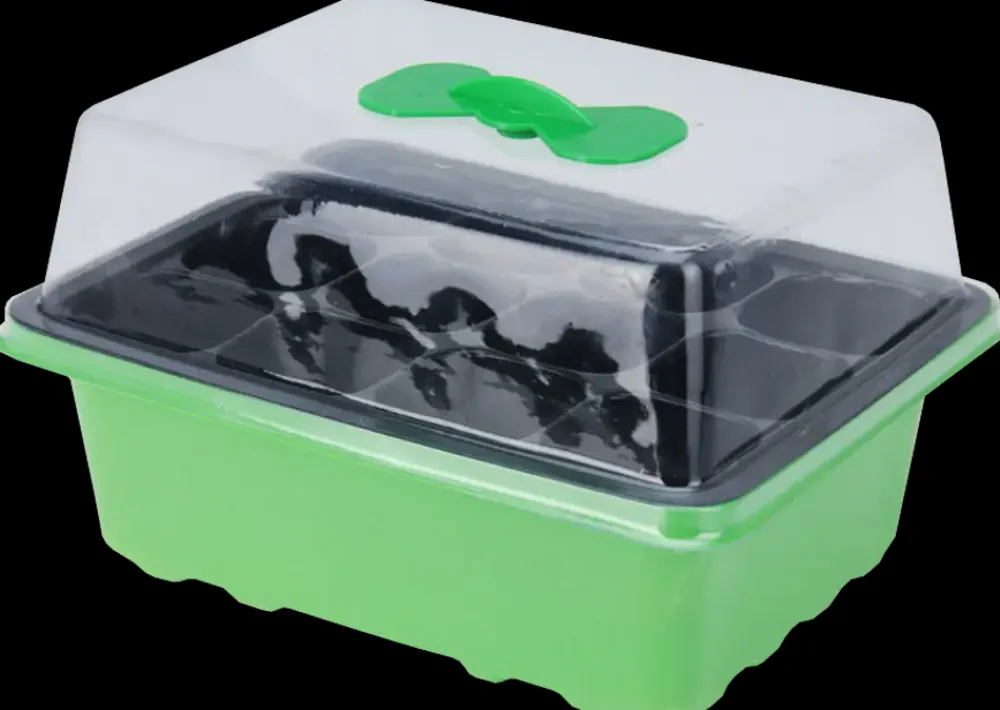Forspiringsdrivhus i 3 dele til indendørs spiring.Drivhuset har 12 rum, så du kan dyrke flere planter samtidigt. Det måler H. 11 x B. 14,5 x L. 18,5 cm og passer til de fleste vindueskarme. Fremstillet i let plast, som er nemt at håndtere og rengøre.Giver dine planter en god start, før de plantes ud i haven. Velegnet til både nybegyndere og erfarne gartnere.