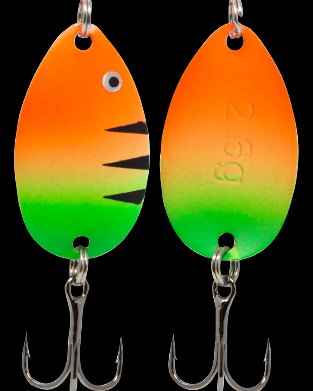 Omura Micro Dancer blink – en 2023-nyhed fra FTM. Det lille mikroblink på 2,6 g har en fremragende gang i vandet. Den lokkende gang i vandet kan ørreder ikke stå for. Der kan også fiskes efter bombarda eller i åen med et spin-rig. Fås i 13 forskellige farver. Monteret med tre kroge, men kan også fiskes med en enkelt krog. Ideel til put & take. Farve: Gulerod.