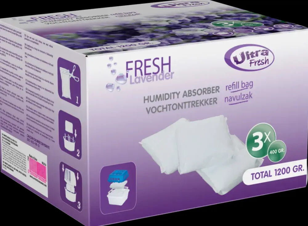 Fugtfjerneren absorberer fugten i rummet og omdanner dette til vand som opfanges direkte i beholderen.Samtidig med at refillen affugter sørger denne også for en behagelig duft i rummet.Virkning: 60 dage; afhængigt af lufttemperatur og fugtniveau.Duft: Lavendel.