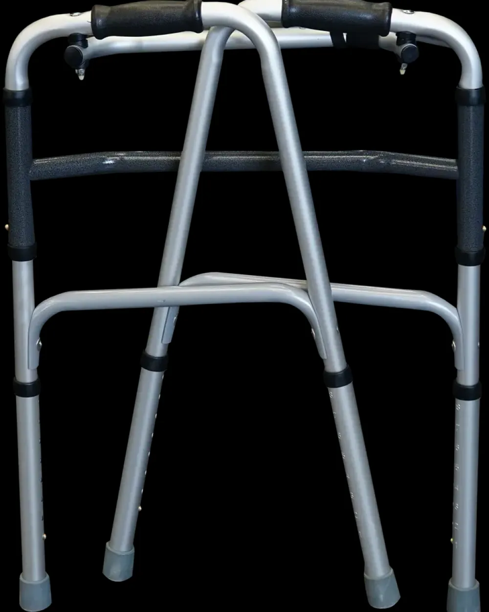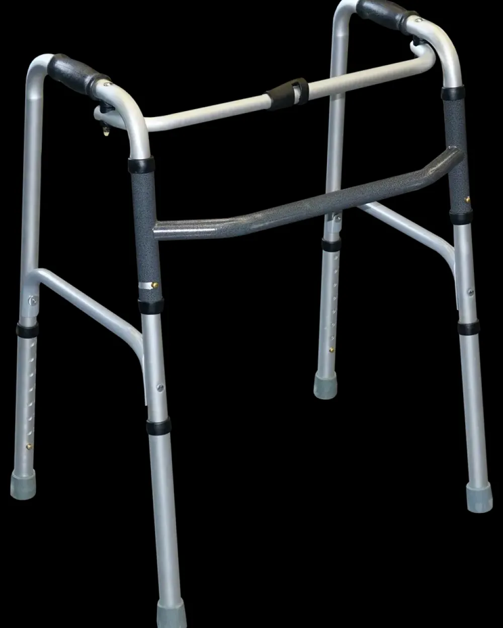 Dette foldbare gangstativ er en pålidelig støtte til personer med gangbesvær eller nedsat mobilitet. Stativet er ideelt til både indendørs og udendørs brug, takket være det lette aluminiumsstel og de ergonomiske håndtag i vinyl, der sikrer en komfortabel og sikker oplevelse. Højden kan justeres i otte trin fra 72 cm til 90 cm, hvilket gør det velegnet til forskellige brugere.Med en maksimal brugervægt på 100 kg og en nem foldemekanisme er det let at transportere og opbevare, hvilket gør det praktisk i hverdagen. Gangstativet er designet til brug med begge arme for optimal stabilitet og balance. Det anbefales især til personer med nedsat muskelstyrke i benene eller balanceproblemer.Produktet leveres med brugervenlige funktioner, såsom højdejustering med klikknapper og holdbare gummi-dupper, der sikrer godt greb på forskellige underlag.