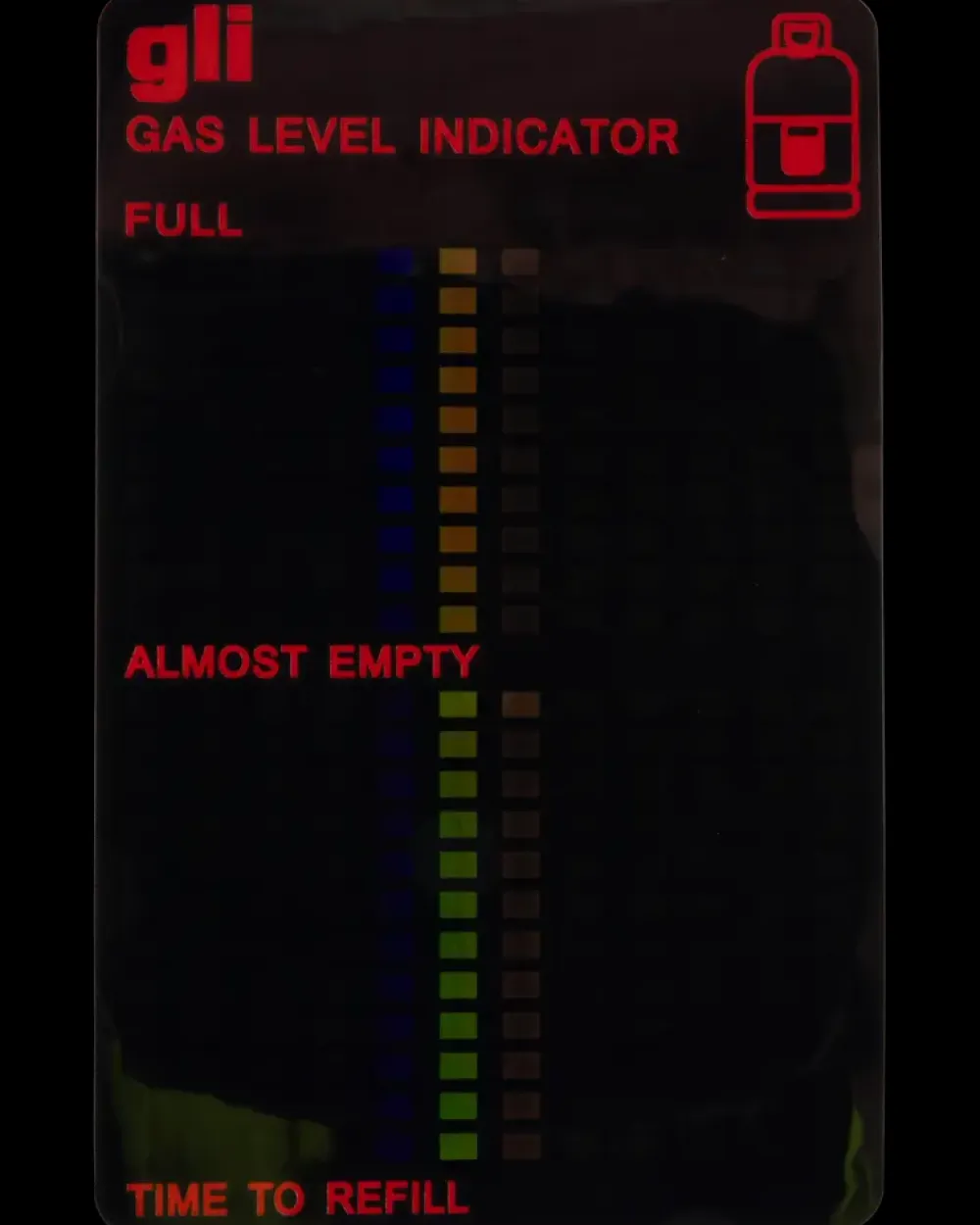 Magnetisk gasniveauindikator til brug med butan- og propangas. Monteres nemt på ydersiden af gasflasken ved hjælp af den magnetiske bagside og giver et visuelt overblik over gasniveauet. Den reagerer hurtigt på temperaturforskelle og viser resultatet på displayet efter blot 15 sekunder.Indikatoren er kviksølvfri, batterifri og kan bruges igen og igen. Den er designet til at være splintfri og sikker i brug. Egner sig godt til både camping, grill og andre gasforbrugende aktiviteter, hvor det er vigtigt at vide, hvornår gasflasken skal genopfyldes.Mål: Højde 100 mm x Bredde 63 mmMateriale: Plast med magnetisk bagsideFarve: Sort med farveskala og tryk