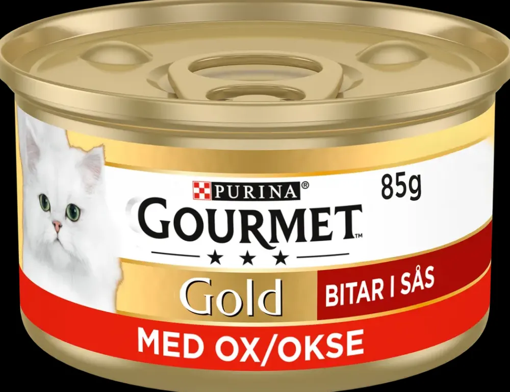 GOURMET Gold bidder med okse er vådfoder til katte, serveret i sovs med små kødstykker. Produktet er udviklet til daglig fodring og giver variation i kattens måltider. Den bløde konsistens gør det let at spise, mens sovsen bidrager til væskeindtaget.Foderet indeholder bidder med okse i sovs og er fremstillet uden tilsatte farvestoffer samt uden tilsatte kunstige smagsstoffer og konserveringsmidler. Sammensætningen er enkel og ensartet, hvilket gør det velegnet som et fast element i fodringen.