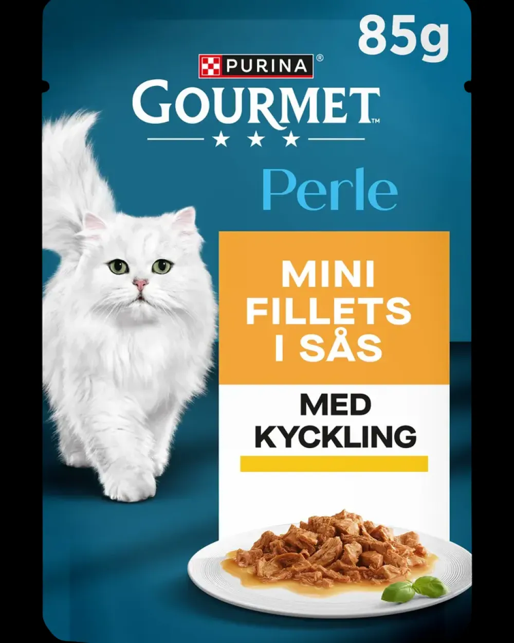 Vådfoder til katte med små stykker kylling i sovs. Produktet er udviklet til daglig fodring og henvender sig til katte, der foretrækker bløde bidder og sauce. Kombinationen af små bidder og sovs gør det let for katten at indtage foderet og giver variation i måltidet.Produktet indeholder kylling og er fremstillet uden tilsatte farvestoffer. De små stykker er tilpasset, så de er nemme at tygge, og sovsen bidrager til en ensartet konsistens i hele portionen. Kan anvendes som fuldfoder eller som supplement til tørfoder.