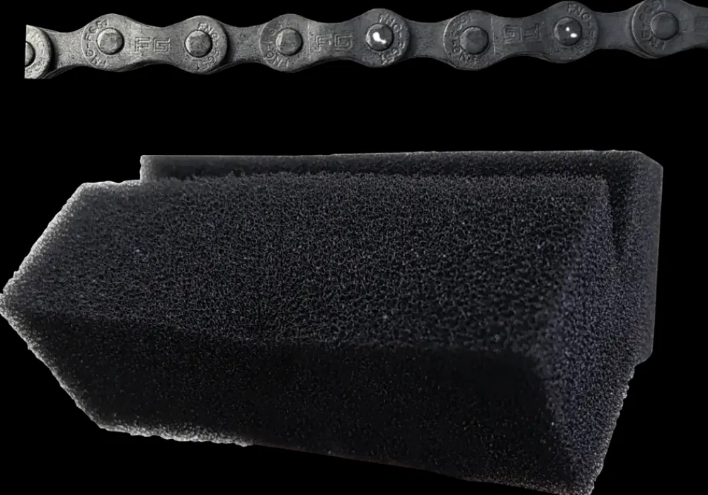 Kædesvamp der gør det nemt at rengøre din cykelkæde grundigt og effektivt. Den fungerer optimalt sammen med kæderensemiddel og hjælper med at fjerne snavs og olieophobninger.Svampen er genanvendelig, hvilket gør den både økonomisk og miljøvenlig.