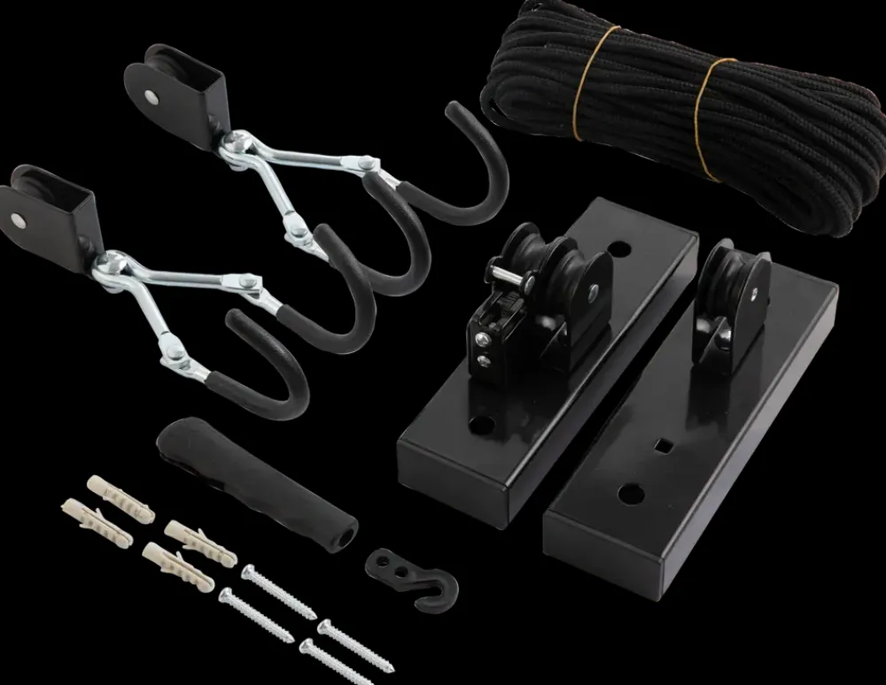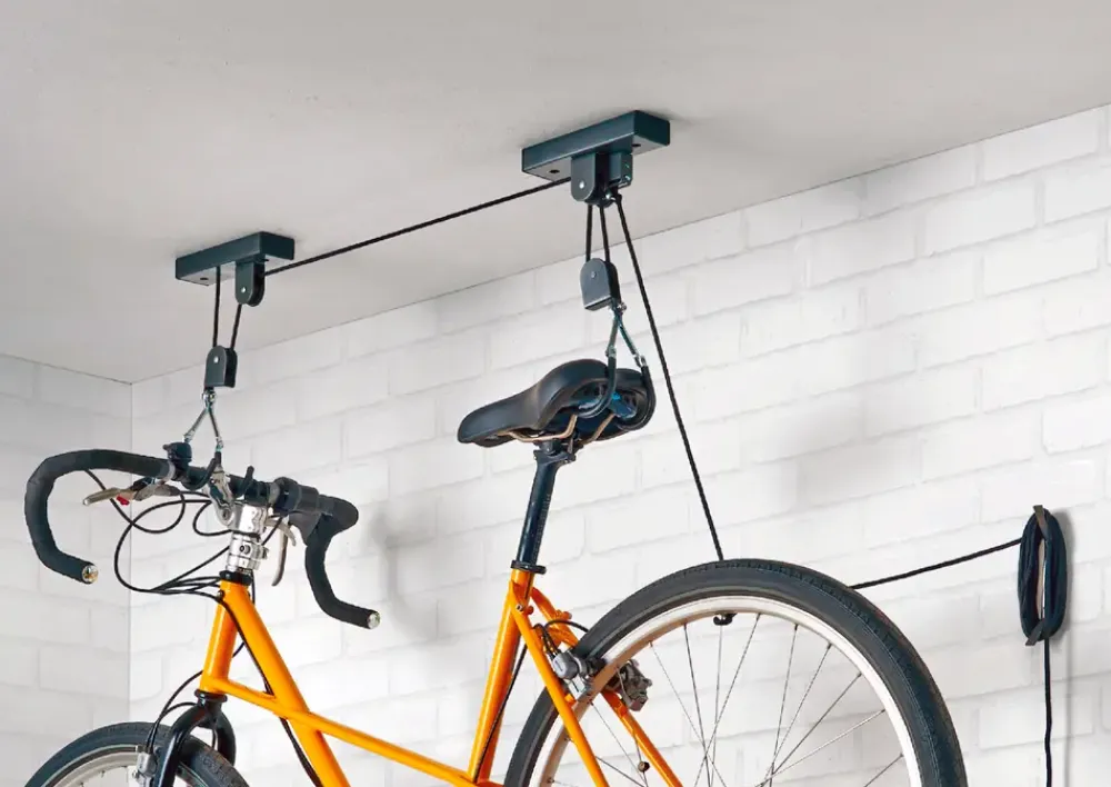 Loftmonteret cykelkrog, som passer til alle cykeltyper.Nem at montere og betjene.Gummibelagte kroge, som ikke beskadiger cyklens lakering.Kan benyttes til cykelopbevaring, i rum med op til 4 meters loftshøjde.Sikker låsemekanisme.