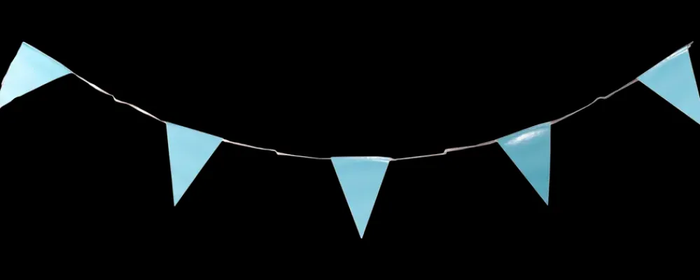 Guirlande med vimpler, 4 meter i lyseblå.12 vimpler på 19 x 14 cm.