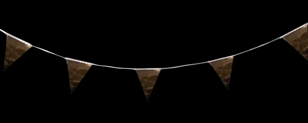 Guirlande med vimpler, 4 meter i roseguld.12 vimpler på 19 x 14 cm.