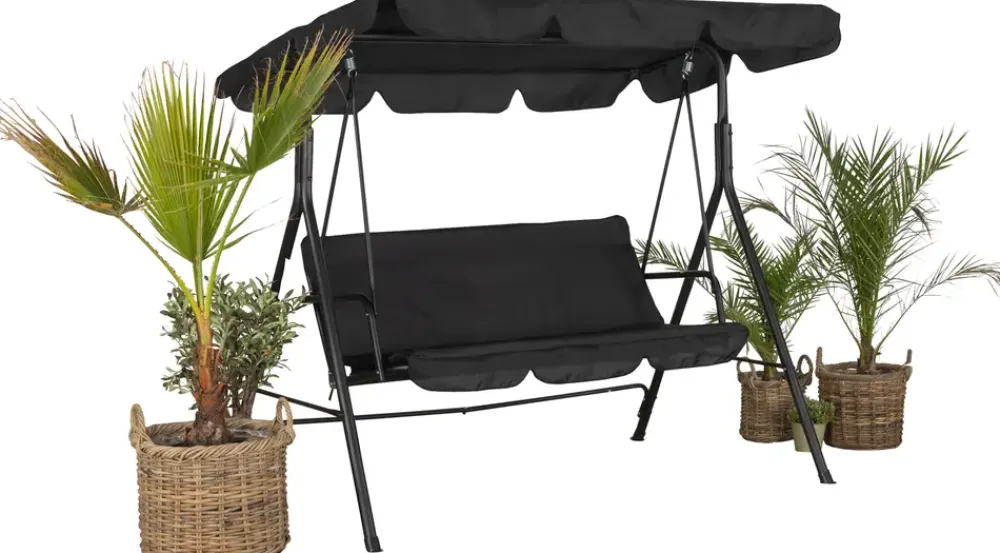 Nyd afslappende stunder i haven eller på terrassen med denne elegante hængesofa til tre personer. Den har et robust, pulverlakeret stålstel for holdbarhed og stabilitet. Den aftagelige hynde gør rengøring nem, og det justerbare tag giver beskyttelse mod sol og let regn.Sæde og tag er fremstillet af 160 g polyester med 600x300D PVC Oxford-belægning, hvilket sikrer en slidstærk og vejrbestandig overflade. Den solide konstruktion måler 110 x 170 x 153 cm og passer til både store og små udendørsarealer.For at forlænge levetiden på havemøbler med stålelementer anbefales brug af varenr. 32208 – SuperHelp Biolub X5 Multispray, 400 ml.Påfør en lille mængde på en tør mikrofiberklud, og fordel det jævnt på ståloverfladerne. Det giver et ekstra lag, der beskytter mod rust, snavs og vejrrelateret slid.