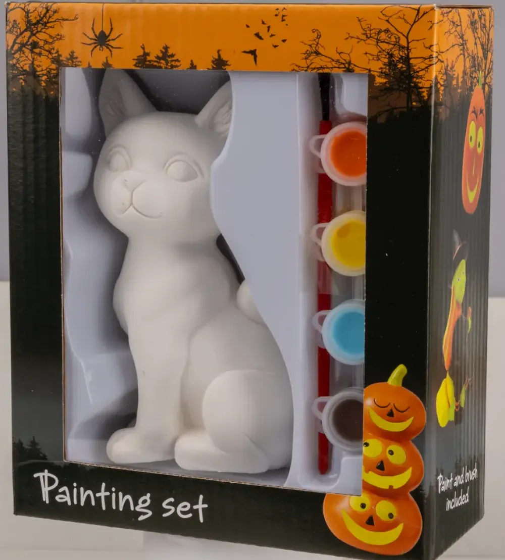 Slip kreativiteten løs med dette mal selv sæt, som er perfekt til at hygge om som familie. I kan vælge mellem en heks, en kat eller et græskar.Sættet indeholder: 1 figur, 4 forskellige farver og 1 pensel.Figur kan ikke vælges i webshoppen