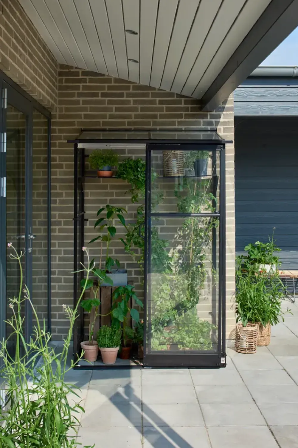 Halls Drivhus Qube Lean-to 24 hærdet glas – sort| Vægdrivhuse