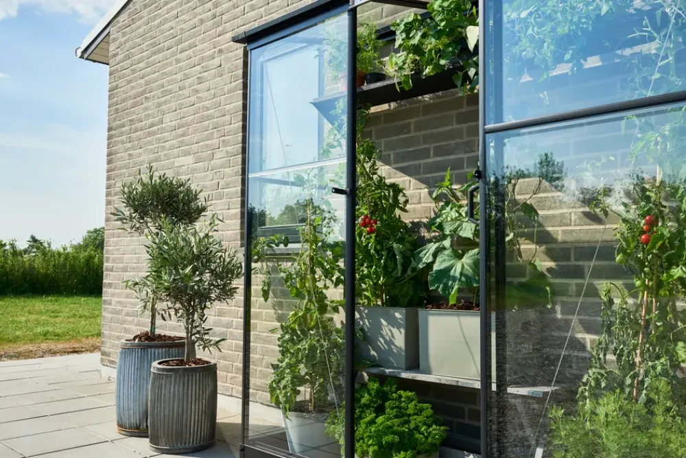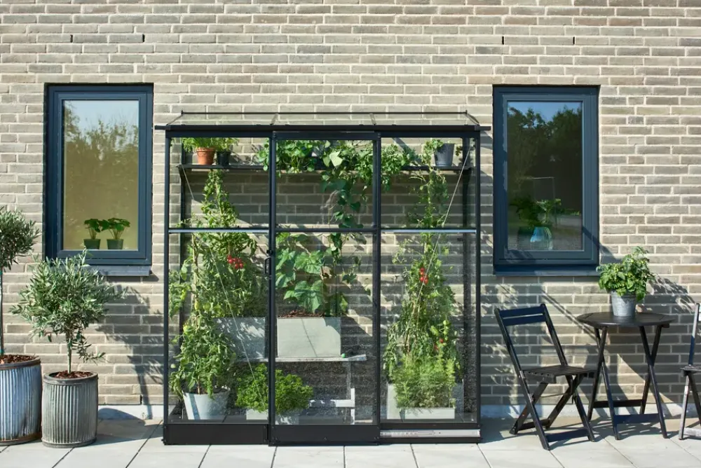 Halls Drivhus Qube Lean-to 26 hærdet glas – sort| Vægdrivhuse