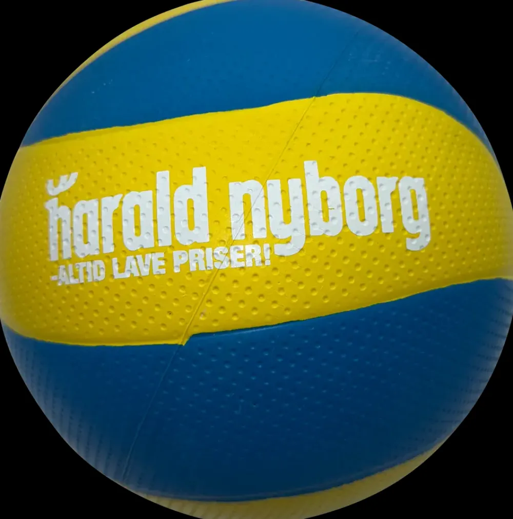 Volleyball med Harald Nyborg logo. Ideel til både træning og spil og med iøjnefaldende farver i blå og gul, er den let at se i luften. Den bløde og lette konstruktion gør den behagelig at spille med. Størrelse: 5 (standard størrelse).