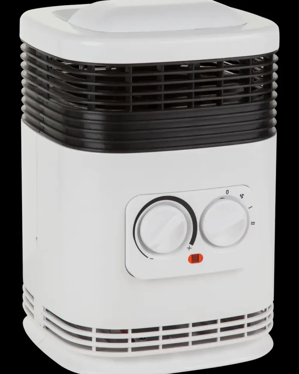 Varmeblæser med 2 varmefunktioner og justérbar termostat.Varmetrin: 750 og 1500 W.Indbygget væltesikring.