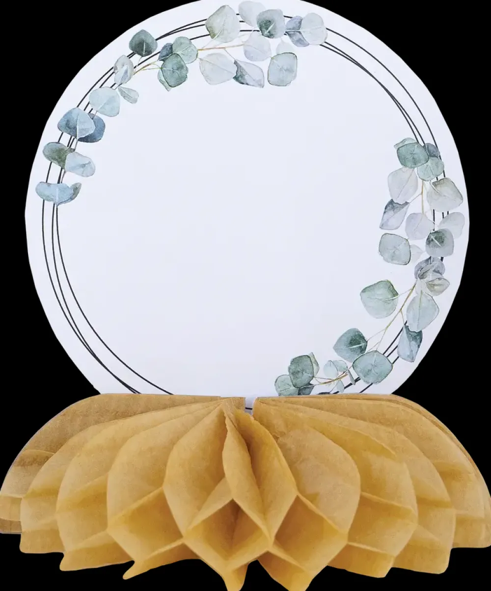 Honeycomb med skilt Ø15 cm, i guld.Skilt til at skrive på, sættes i midten af honeycomb.