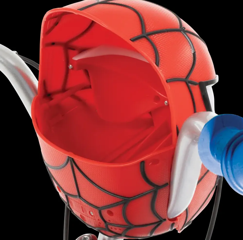 En 12″ børnecykel til børn i alderen 3–5 år med benlængde ca. 35–40 cm. Modellen er beregnet til de første cykelture, hvor støttehjulene kan hjælpe med balance, indtil barnet bliver mere sikkert. På styret er der en Spider-Man-maske med et lille opbevaringsrum. Masken kan give lys og lyde ved brug af LR1130-batterier.Cyklen har stålramme, lukket kædeskærm, frihjul og håndbremser for og bag. Sadel og greb er udformet med polstring og blød overflade. For- og bagskærme er monteret.Modellen leveres 85% samlet og færdiggøres af en voksen.
