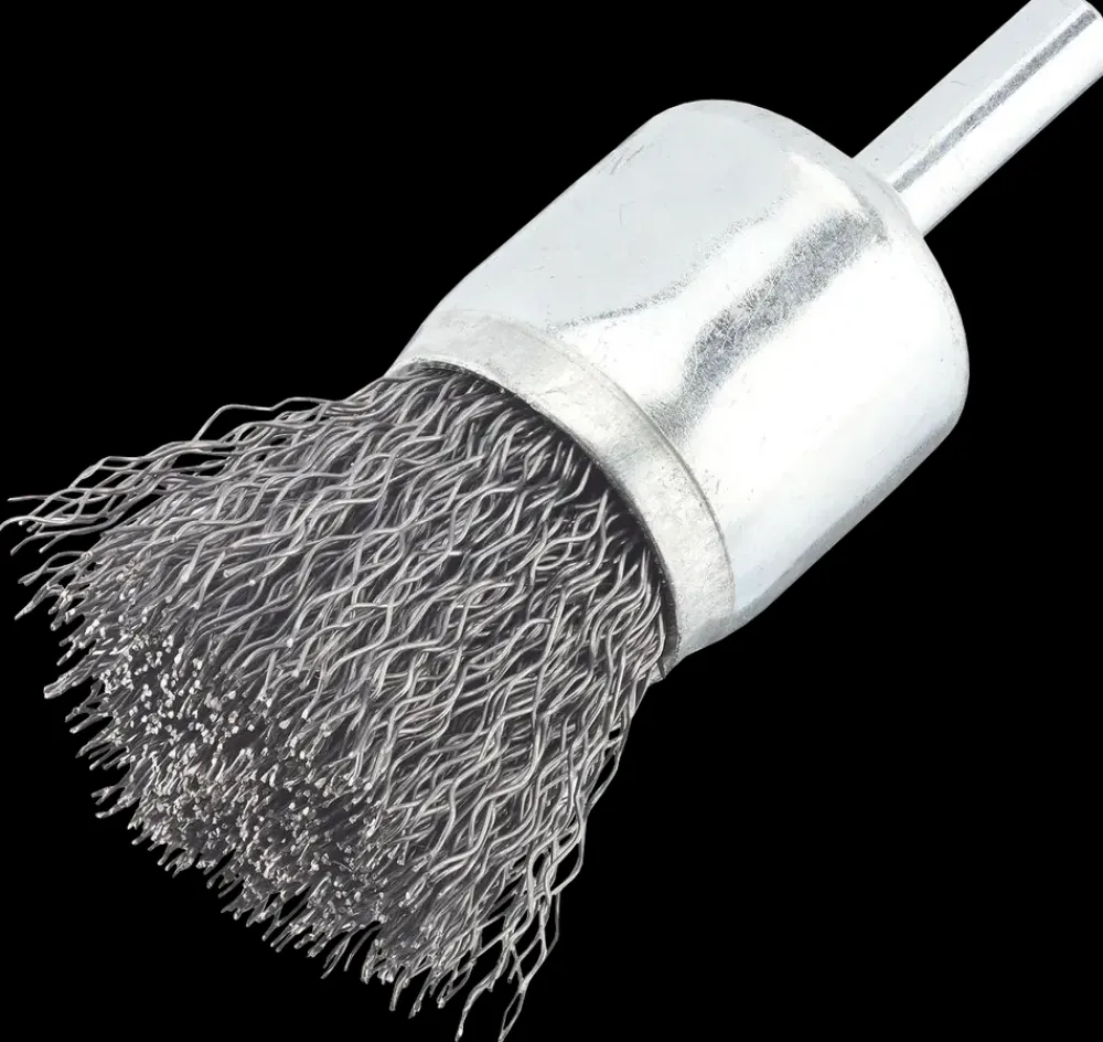 Kopstålbørste med bølget rustfrit tråd og skaft. Anvendes til rensning og overfladebehandling på rustfrit stål, aluminium og ikke jernholdige metaller. Bruges på boremaskiner.