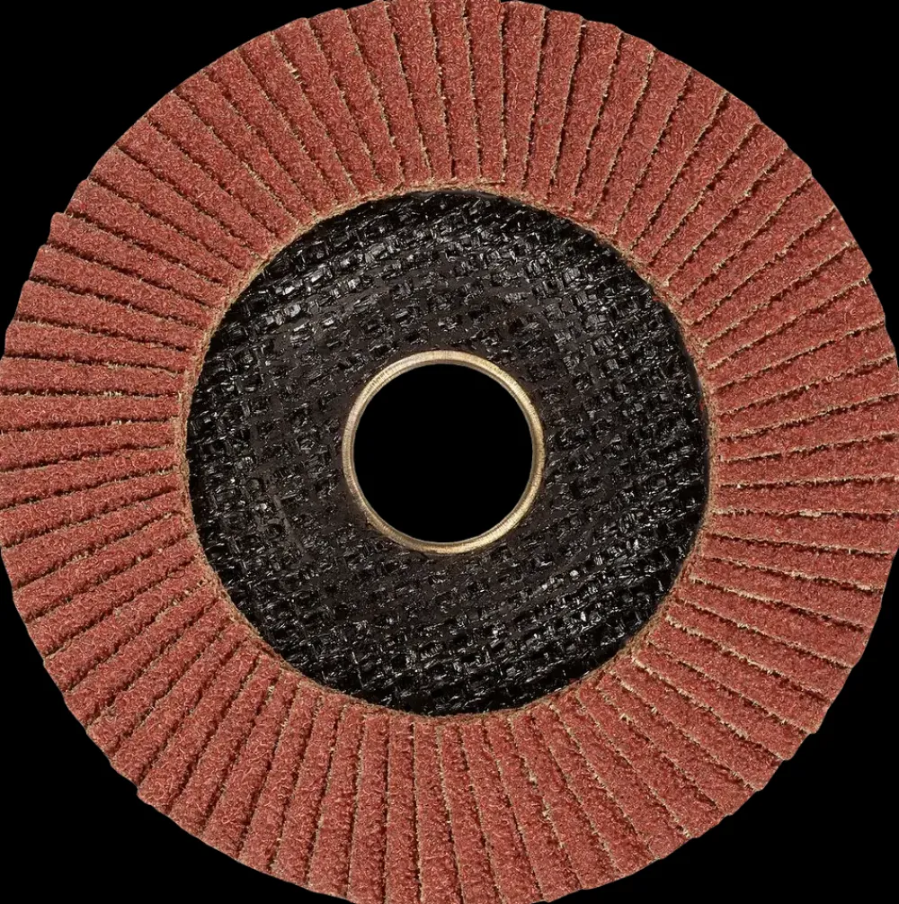 Flapdisc beregnet til brug med vinkelsliber. Med rektangulære, overlappende fleecelameller, der er limet fast på støtteplade af glasfiber.Effektiv rensning og polering af metal, forberedelse og efterbehandling af svejsesømme og lakoverflader, samt polering af rustfrit stål.
