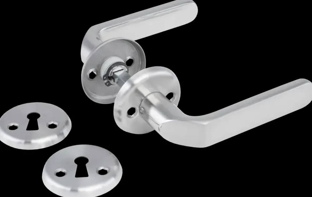 Dørgreb med 6 mm oppresset roset og matkrom overflade.Til indvendige døre.Nøgleskilte, skruer og bøsninger til nem montering medfølger.Overflade: Matkrom.Dørtykkelse: 38-50 mm.Centerafstand: 30 mm.Til indvendige døre.
