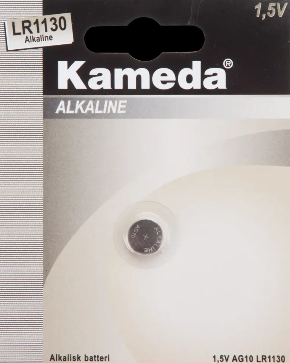 Kameda alkaline knapcelle batteri.Spændning: 1,5 volt.Andre navne for denne model:AG10, SG10, LR54, SR54, SR1130