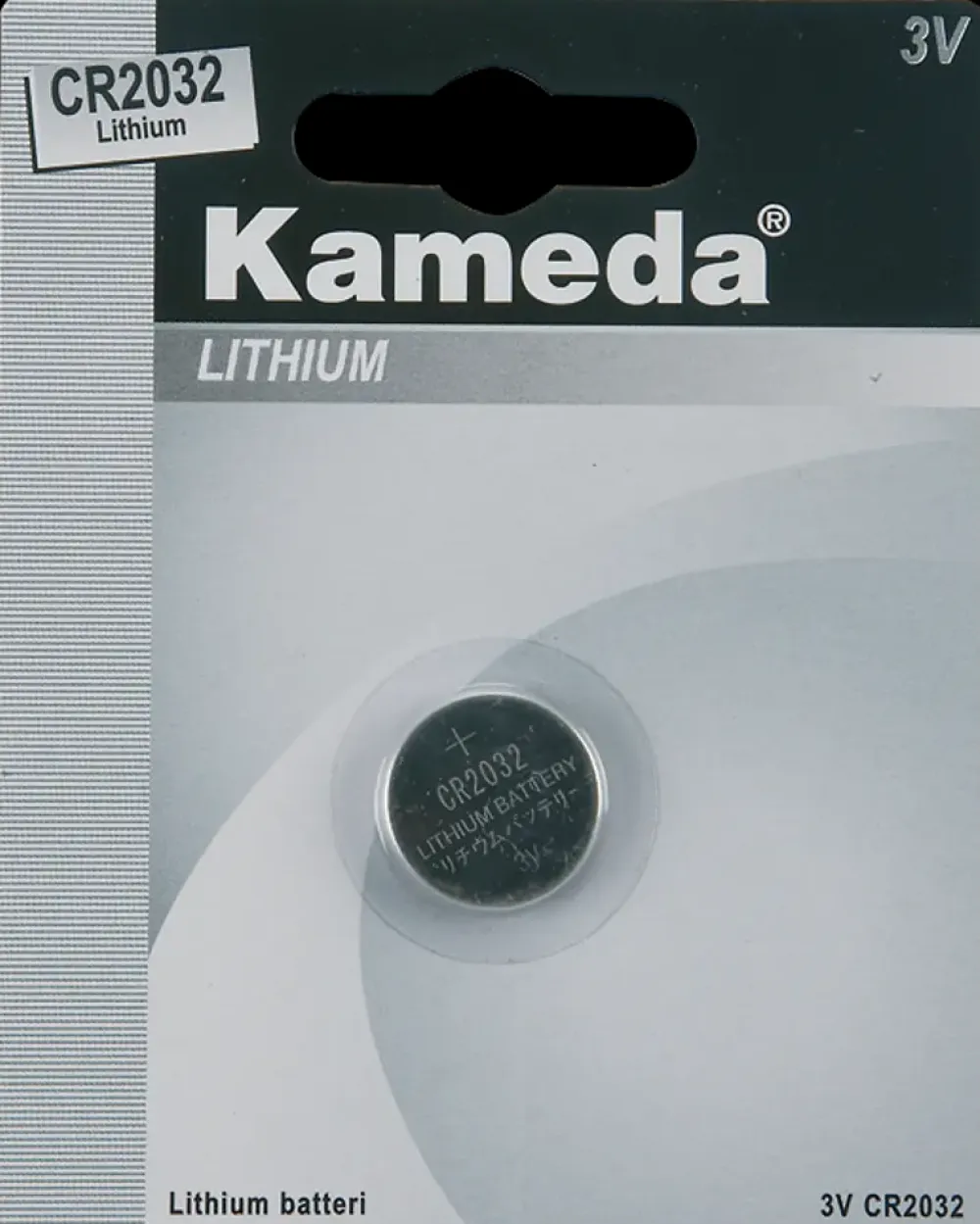 Kameda lithium knapcellebatteri, der kan bruges i mange typer fjernbetjeninger, lommeregner, små cykellygter og andre elektroniske apparater. Spænding: 3 volt.