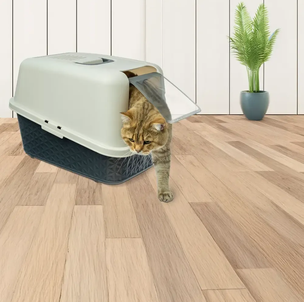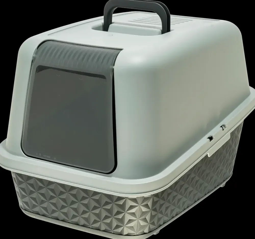 Kattebakken er beregnet til katteejere, der ønsker en lukket løsning til daglig brug i hjemmet. Den giver katten et afskærmet område og bidrager samtidig til et renere indeklima. Den lukkede konstruktion reducerer spredning af lugt og kattegrus, mens indgangen i fronten giver katten nem adgang.Toppen kan tages af, hvilket gør tømning og rengøring enklere. Ventilationshuller i overdelen understøtter luftcirkulation og mindsker ophobning af fugt. Den integrerede svingdør hjælper med at holde gruset inde i bakken under brug.Kattebakken er udført i plast i grå nuancer med en struktureret bund og glat overdel. Et håndtag øverst gør det nemt at flytte bakken efter behov. Størrelsen giver plads til, at de fleste katte kan bevæge sig frit under brug.Tekniske detaljer og mål:Mål: L. 53,5 x B. 38,5 x H. 36,5 cmMateriale: Plast (PP)Farve: Grå