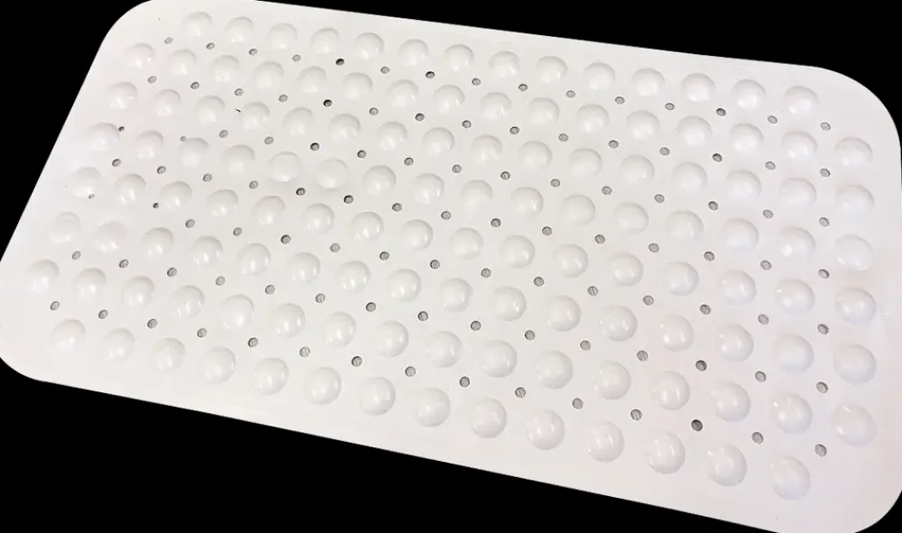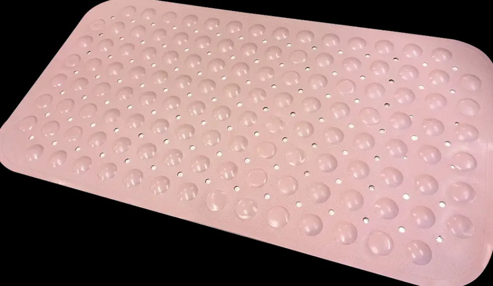 Bademåtte med anti-slip funktion og sugekopper på undersiden, der hæfter på glatte overflader som emalje, keramik og plast. Måtten er udstyret med praktiske afløbshuller, der forhindrer vandophobning og sikrer effektiv afdrypning. Bemærk; der ikke kan vælges farve ved køb i webshoppen.