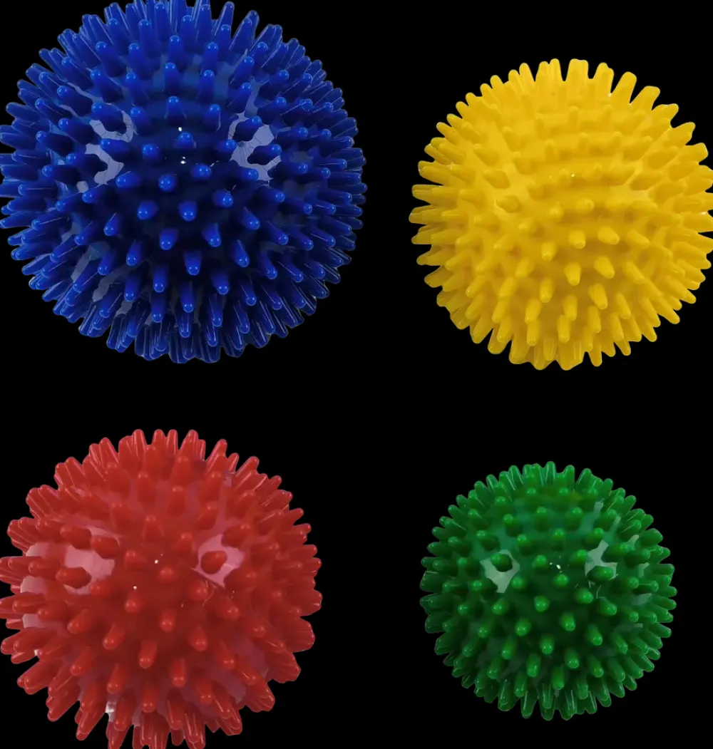 Sæt med 4 massagebolde til at afhjælpe muskelømhed- og spændinger.Massageboldene kommer i hver deres størrelse:1 x Ø6 cm1 x Ø7 cm1 x Ø9 cm1 x Ø10 cm