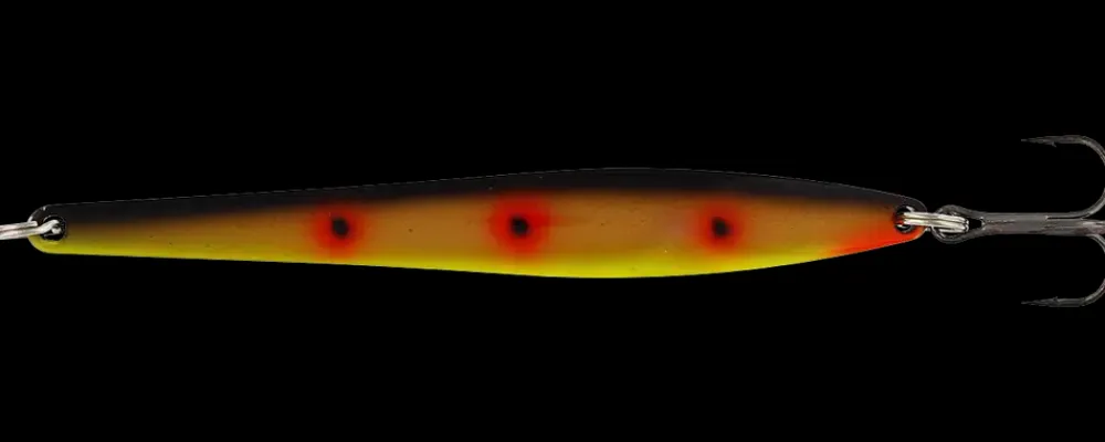 Dette blink imiterer en tobis og er perfekte til at fange havørred og hornfisk.Den aerodynamiske form gør det ideelt til lange kast på kysten.Blinket er blyfrit, har splitringe i rustfrit stål og kemisk skærpet round bend trekrog.