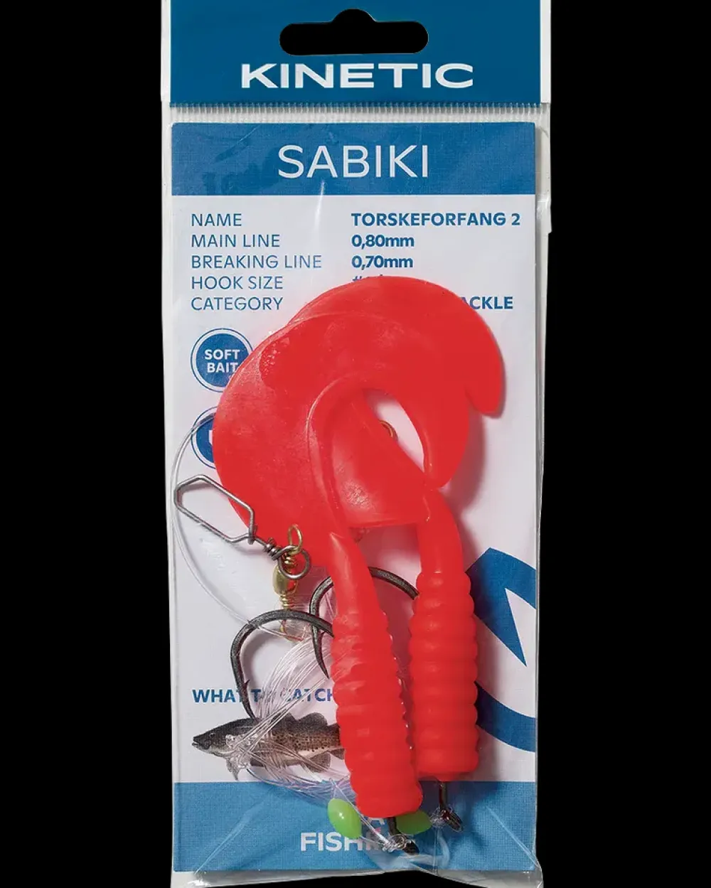 De bløde curly tails, på dette rig, har velprøvede farver og stærke #8/0 kroge. Klar til de store fisk. Perfekte til fiskeri ved bunden agnet med naturlig agn, eller til aktivt pelagisk fiskeri. Kvalitets nylonlineKemisk skærpede kroge Store silikoneorme med curly tailTorsk og sejFarve: Rød