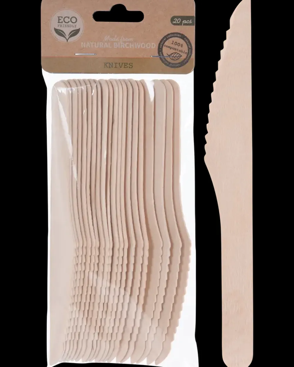 Disse engangsknive er lavet af birketræ.Perfekt til sommerfester, picnic og andre begivenheder, hvor du ønsker en praktisk løsning.Knivene er 100% kompostérbare.