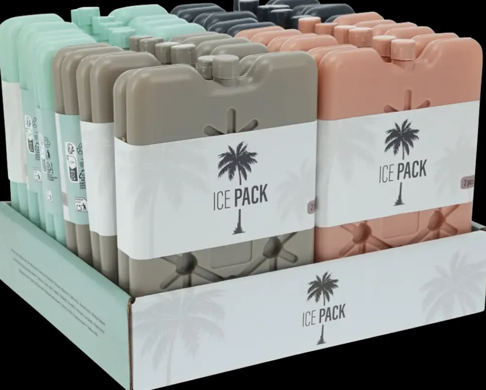 Sæt med to køleelementer til brug i køletasker og bokse. Elementerne nedfryses før brug og hjælper med at holde mad og drikke kolde. De er fremstillet af polyethylen og har en flad form, der er nem at placere mellem varer.Målene er ca. H. 16 x B. 10 x D. 3 cm og vægten er 200 g pr. element. Overfladen har støbte markeringer med snefnugmotiv. Farverne er assorterede i dæmpede nuancer.Farve kan ikke vælges ved køb i webshoppen.