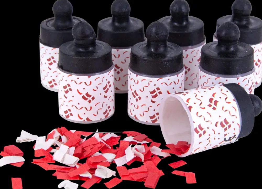 8 fine konfetti popper med rød/hvid konfetti, kan genfyldes. Er det blevet tid til at fejre fødselsdag, konfirmation eller en anden stor begivenhed? Så glem ikke pynten! Hos os finder du et flot udvalg af hvad du skal bruge til den store dag af dekorationer og bordpynt. Pynt op med flag, balloner, guirlander, vimpler og serpentiner, så er du klar til fest.
