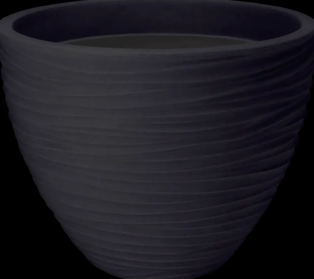 Pæn riflet krukke i antracitgrå med god plads til blomster og planter. Krukken kan sættes op i haven eller på terrassen. Der er markeret borehuller i bunden af krukken, så du nemt kan lave drænhuller efter behov