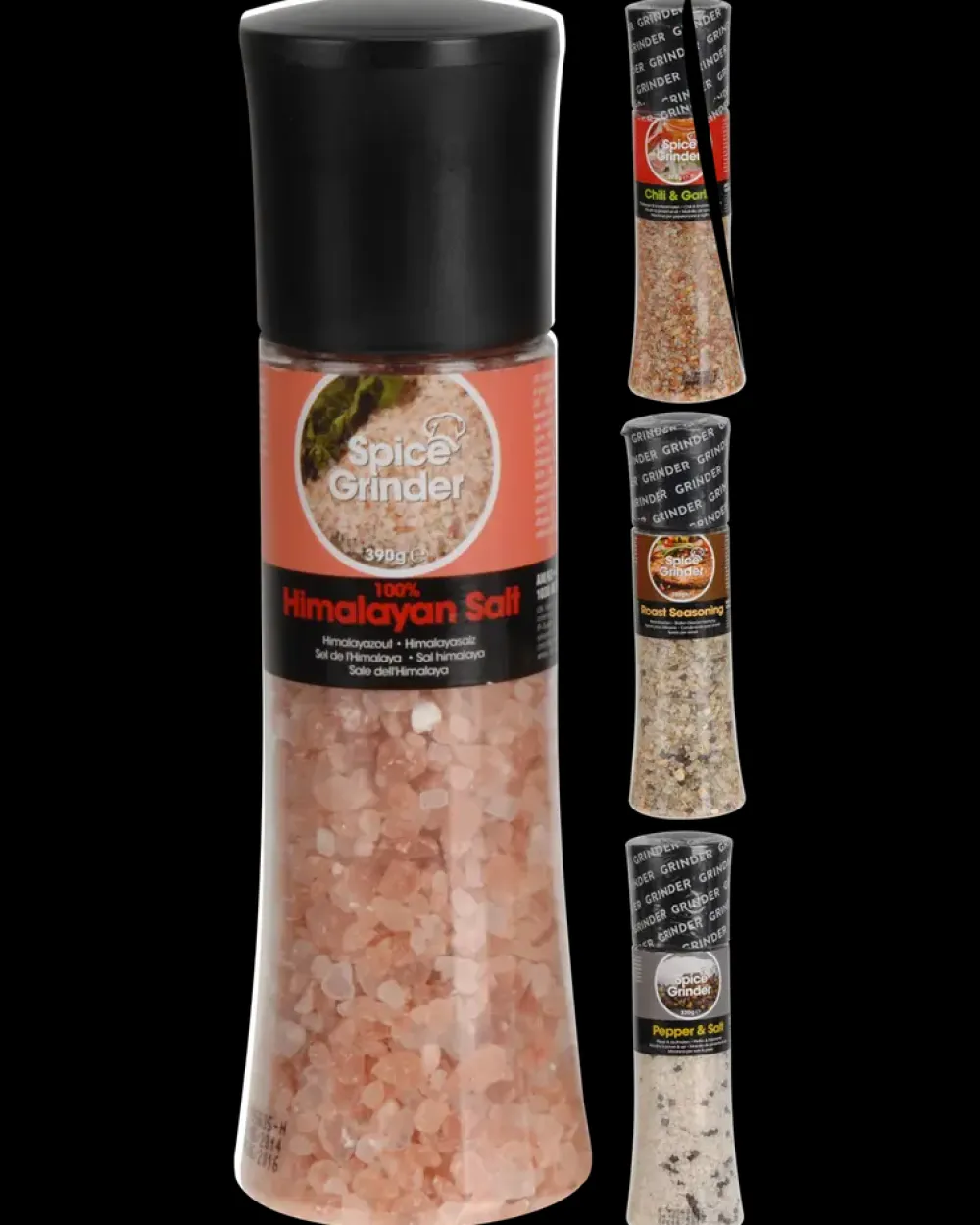 Praktisk krydderikværn i 4 assorterede varianter: Pepper & Salt 320 g. Roast Seasoning 240 g. Chili & Garlic 240 g. Himalayan Salt 390 g. BEMÆRK, at der ikke kan vælges variant ved køb i webshoppen.