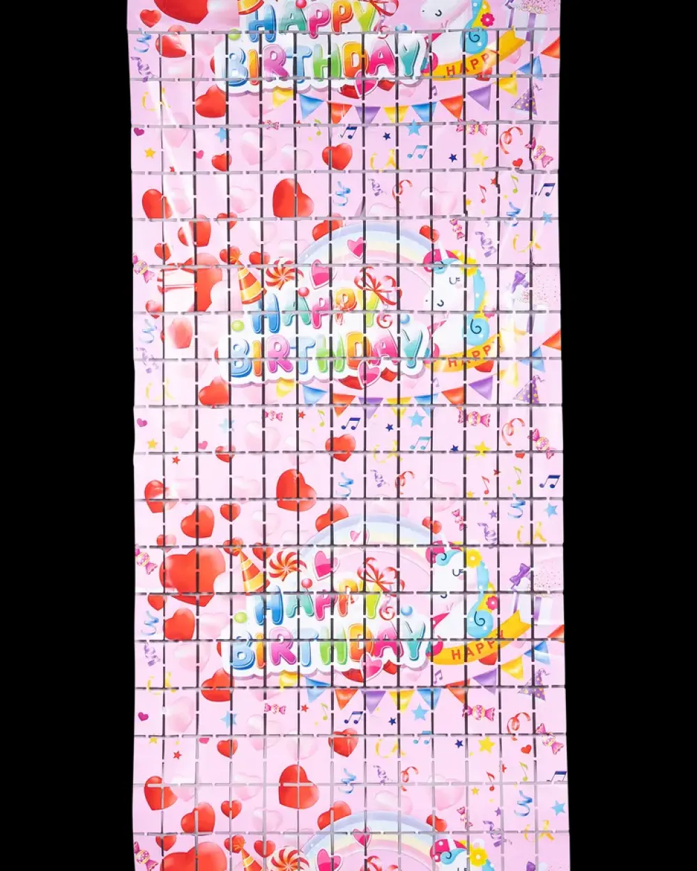 “Happy birthday” Folie lametta Back Drop gardin, med firkanter i sølv måler 100 x 200 cm.Du kan nemt juster højden på det ved at klippe af gardinet.Lametta gardinerne er designet med en praktisk tapekant foroven, så de nemt kan hænges op, hvor du ønsker det, uanset om det er indendørs eller udendørs. Deres glitrende overflade vil reflektere lyset.
