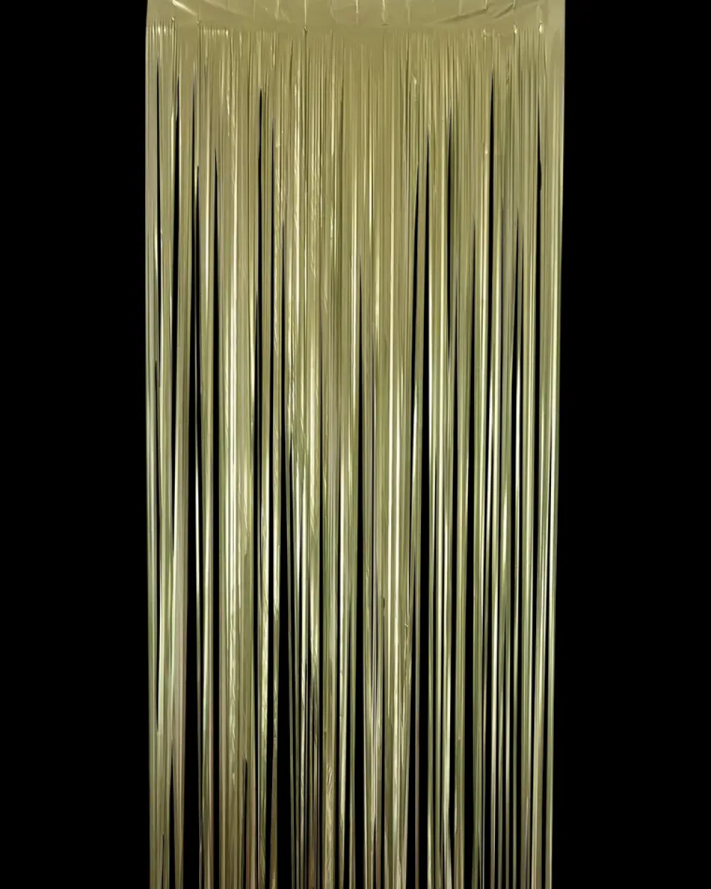 Folie lametta gardin i mat guld måler 90 x 250 cm.Gardinet kan nemt tilpasses i målene ved at klippe af det.Lametta gardinerne er designet med en praktisk tapekant foroven, så de nemt kan hænges op, hvor du ønsker det, uanset om det er indendørs eller udendørs.Lametta gardinets glitrende overflade vil reflektere lyset.