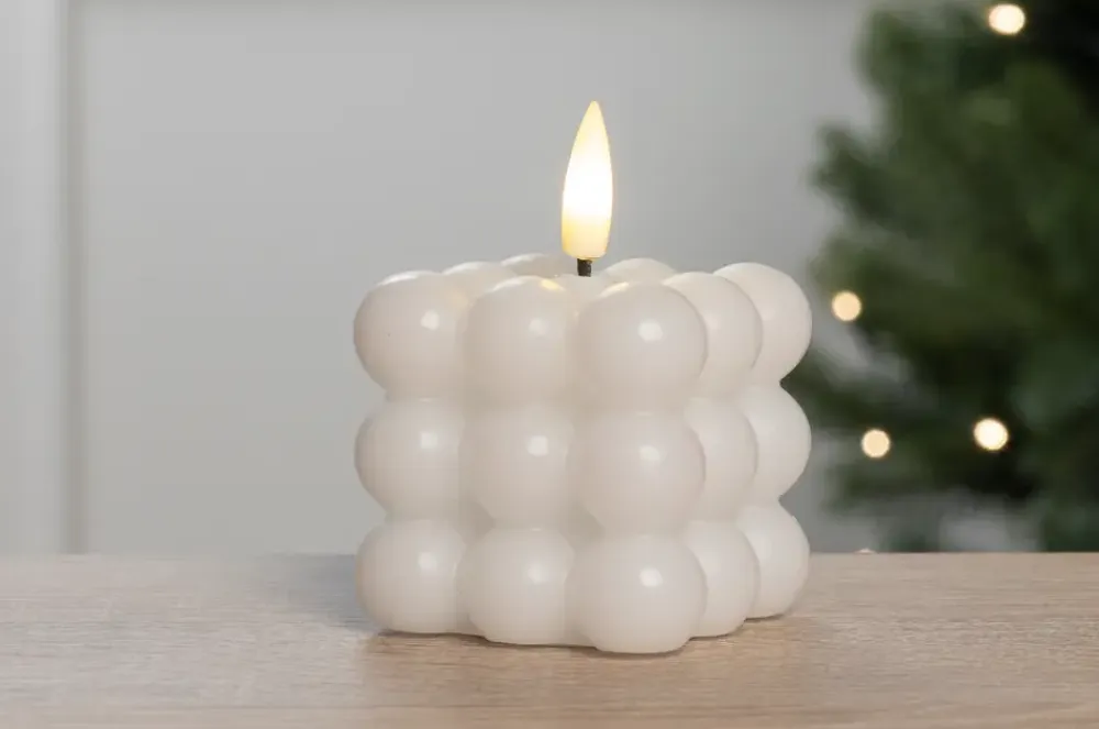 Pæn LED udgave af bobbellyset, som vil give et smukt udtryk til dit hjem. Den varmhvide flamme har en flakkende effekt, som gør lyset hyggeligt på samme måde som hvis man havde et almindeligt stearinlys tændt. Dertil har den en timerfunktion, så den er tændt i 6 timer og slukket i 18 timer. Bruger 1 stk. CR32-batteri (ekskl.)