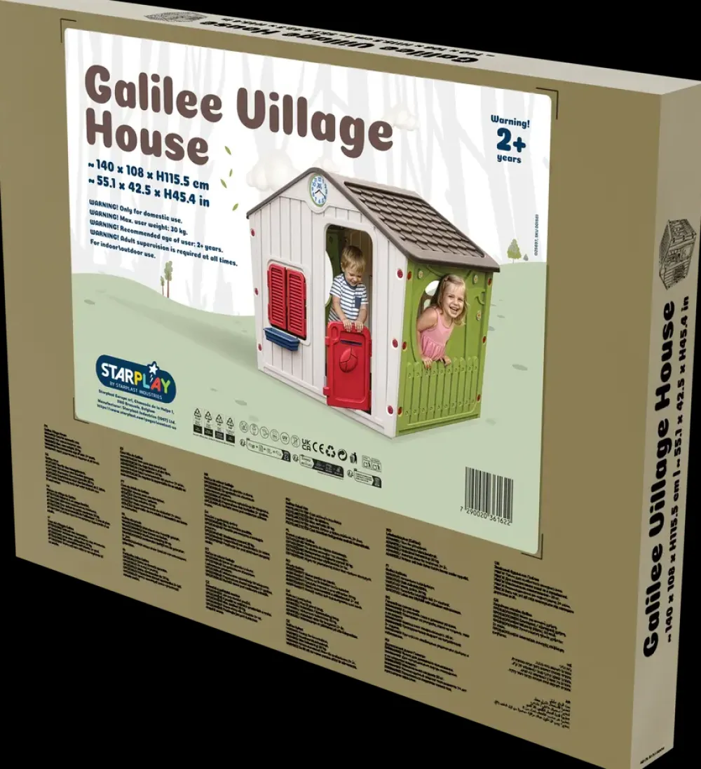 Legehus til børn med plads til rolleleg og aktiviteter udendørs i haven. Huset danner en ramme for leg som at lege hus, invitere til teselskab eller skabe egne legeuniverser. Flere åbninger og detaljer giver mulighed for interaktion under leg.Modellen har dør, vinduer med skodder samt åbninger, der gør det muligt at kigge ind og ud. Der er desuden elementer som blomsterkasser og poståbning, som kan indgå i legen. Indretningen giver plads til, at flere børn kan lege samtidig.Konstruktionen er udført i plast og egnet til udendørs brug. Materialet kræver begrænset vedligeholdelse og kan rengøres med vand efter behov. Huset er let at samle og kan flyttes efter placering i haven.Mål: H. 115,5 x B. 108 x L. 140 cmMateriale: PolypropylenFarve: Rød, grøn og brun