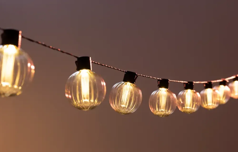 Lyskæde kugle smokey grå Ø7,6 cm 10 stk.| Øvrigt Havetilbehør|Øvrig Belysning