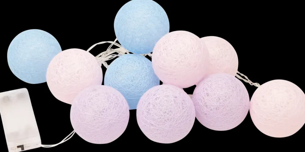 Fin dekorationslyskæde med kugler i bomuldstråd til indendørs brug.Kan hænges op, pynte på bordet eller bruges som dekoration i en glasvase m.m.Farvekombination: Lys pink, lys blå, lys lillaFarve, lys: Varm hvid.Bruger 2 x AA batterier (ekskl.).*HUSK AT BESTILLE BATTERIER*