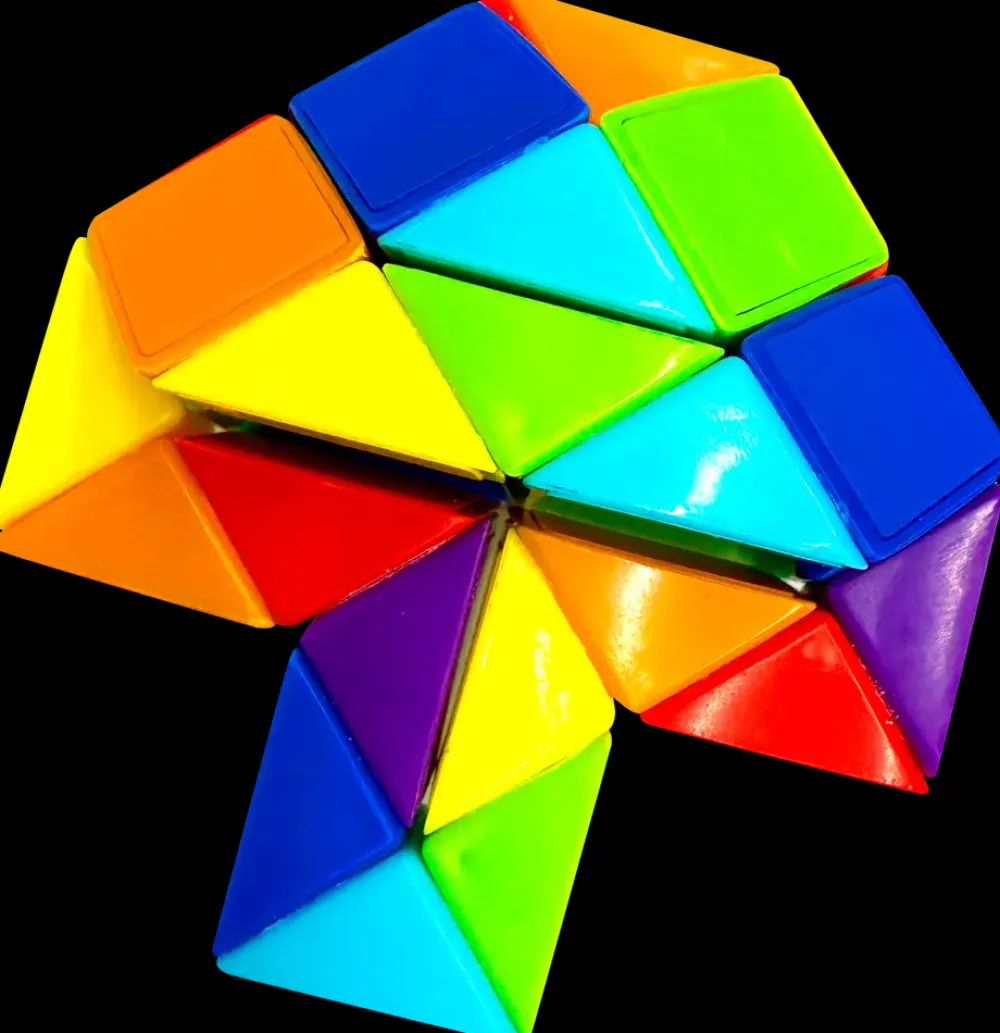 Magic Snake bruges til leg og simple konstruktionsopgaver, hvor de mange led kan drejes og formes efter behov. Den giver mulighed for at skabe forskellige figurer og mønstre, som støtter kreativ leg for både børn og voksne.De drejelige led gør det let at ændre form og udvikle nye designs. Legetøjet kan anvendes til små opgaver med problemløsning, hvor man former dyr, geometriske figurer eller abstrakte modeller. De mange farver giver et tydeligt visuelt overblik over de enkelte segmenter, som kan kombineres på flere måder.Overfladen består af glatte plastfelter i klare farver, og leddene kan roteres for at ændre længde og vinkel. Konstruktionen giver en let bevægelse, så produktet holder formen, når det er sat sammen.