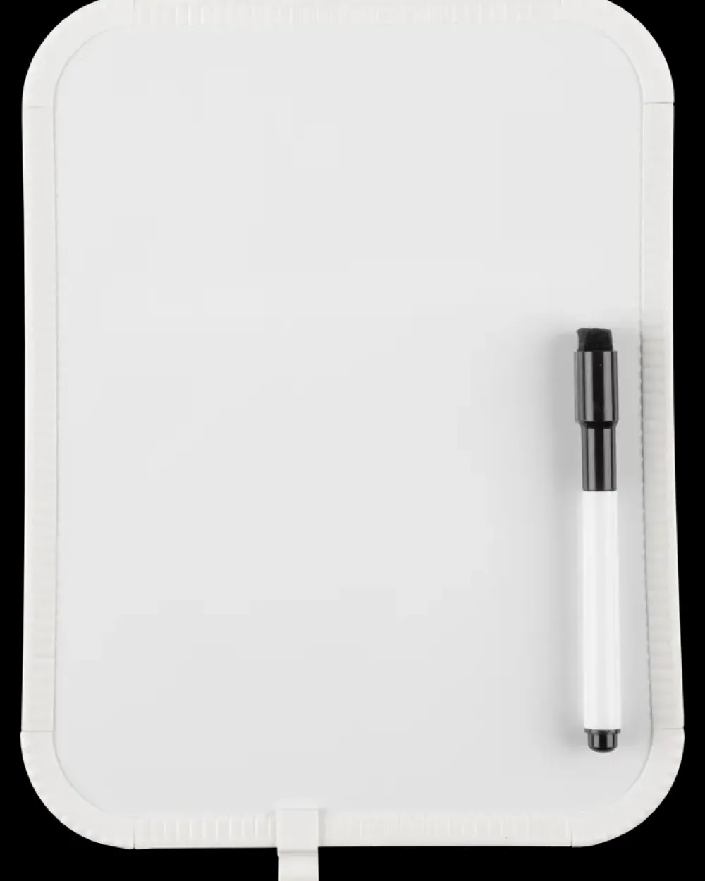 Whiteboardtavle i A4 størrelse med magnetisk, hvidlakeret ståloverflade og bagside i pap. Nem at have med på farten.Inkl. 1 whiteboard-tusch, dobbeltklæbende tape.Ramme: Assorteret farve.Bemærk, at der ikke kan vælges farve ved køb i Webshoppen.