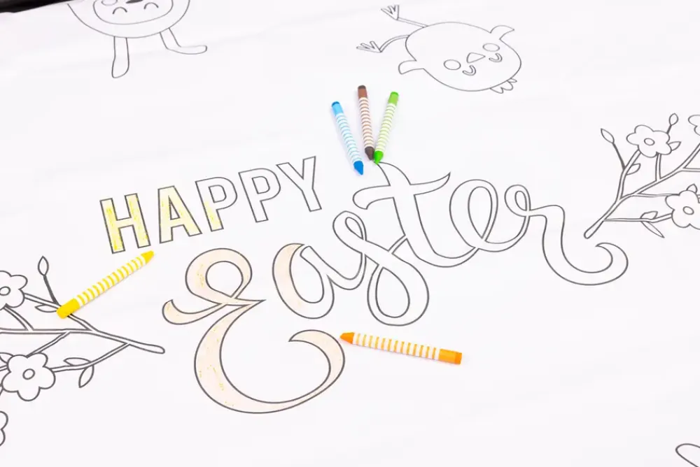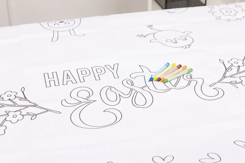 Gør påskebordet ekstra festligt med denne mal-selv dug! Dugen er dekoreret med fine påskemotiver, der kan farvelægges efter eget ønske. Den er fremstillet af papir og måler 180 x 120 cm – velegnet til både små og store borde.Sættet indeholder fem farveblyanter, så både børn og voksne kan slippe fantasien løs og skabe deres eget unikke design. Perfekt til hyggelige påskesammenkomster eller kreative aktiviteter derhjemme.