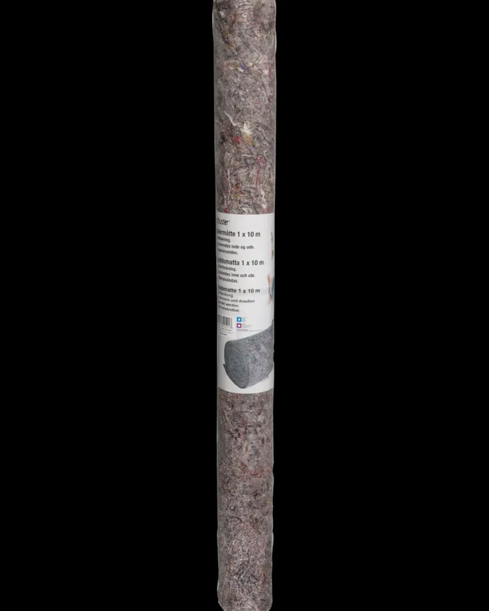 Malermåtte til afdækning ved malerarbejde. Beskytter effektivt gulve og andre overflader mod malingstænk og snavs. Undersiden er belagt med plastik, som gør måtten skridsikker og forhindrer gennemtrængning af væske og maling ved spild.Fremstillet i slidstærkt non-woven materiale, der kan genbruges flere gange. Nem at rulle sammen efter brug.Måler 1 x 10 meter og dækker et stort areal – praktisk ved større projekter som vægmaling, loftrulning og lakering. Sort/grå farve med filt-lignende struktur og synlige fibre, som understøtter den absorberende funktion.