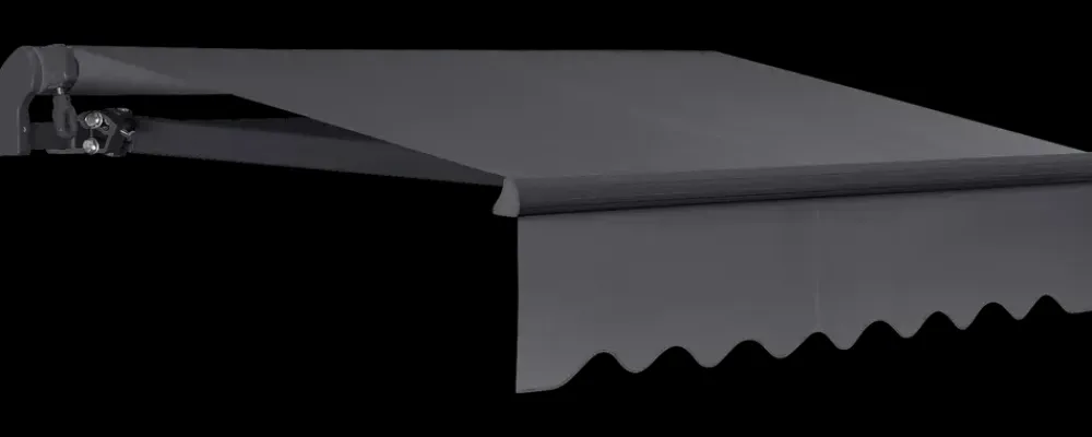 Manuel åben markise med gråt stel og grå PU-coated polyesterdug.Markisen har et elegant og klassisk design og er nem at sætte op.Markisen har en bredde på 295 cm og et udfald på op til 250 cm.