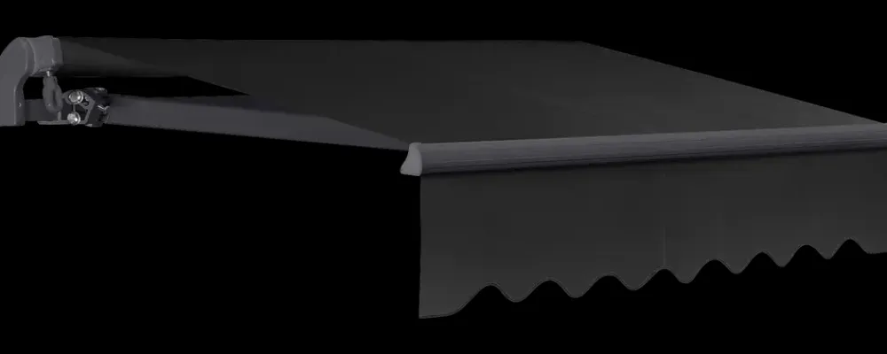 Manuel åben markise med gråt stel og sort PU-coated polyesterdug.Markisen har et elegant og klassisk design og er nem at sætte op.Markisen har en bredde på 350 cm og et udfald på op til 250 cm.