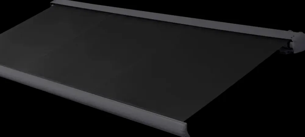 Automatisk 4,5 x 2,5 meters markise med sort PU-coated polyesterstof og grå, fuld kassette.Markisen monteres med de medfølgende beslag på f.eks. ydermuren.Man skaber nemt skygge på terrassen ved at rulle markisen ud på de varme sommerdage, og med denne model klares det nemt med fjernbetjeningen.Når markisen foldes helt sammen, lukkes rullen inde i dens eget lukaf.Taget er lavet af 280 g/m² polyester og har tykke metalstænger, som støtter hele vejen ud.