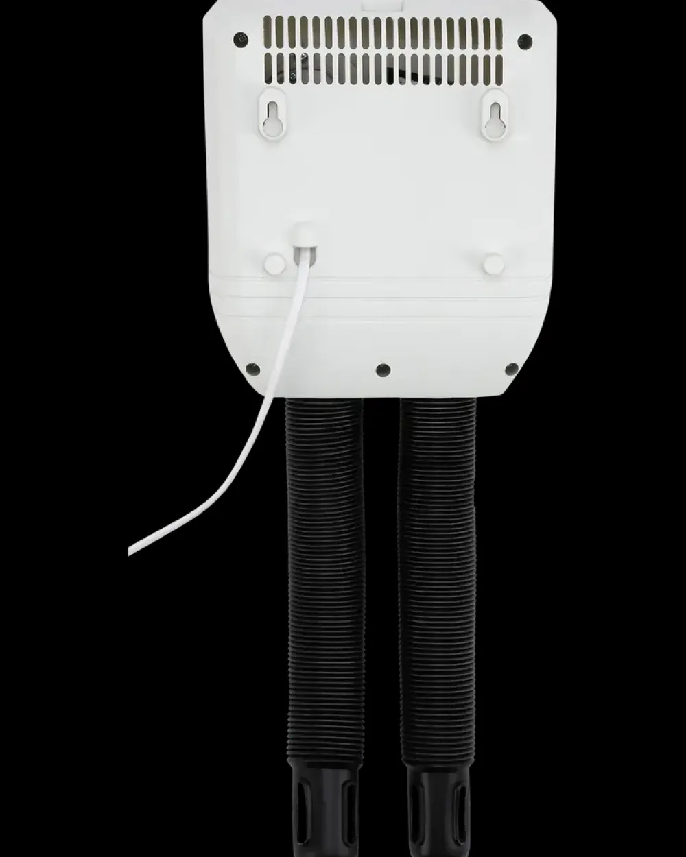 Sko- og støvletørrer har 2 slanger og kan tørre ét par sko/støvler ad gangen. Den indbyggede timer kan justeres fra 0-120 minutter, når den indstillede tørretid er udløbet, slukker apparatet automatisk. Apparatet monteres let på væggen ved hjælp af det medfølgende monteringsbeslag. Effekt: 250 watt